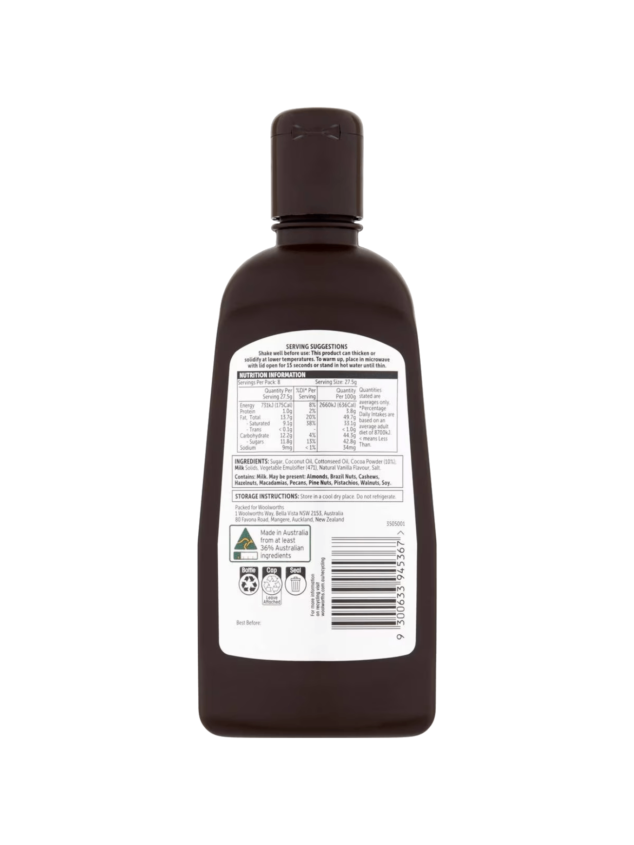 WOOLWORTHS CHOC TOPPING HARD SET 220G